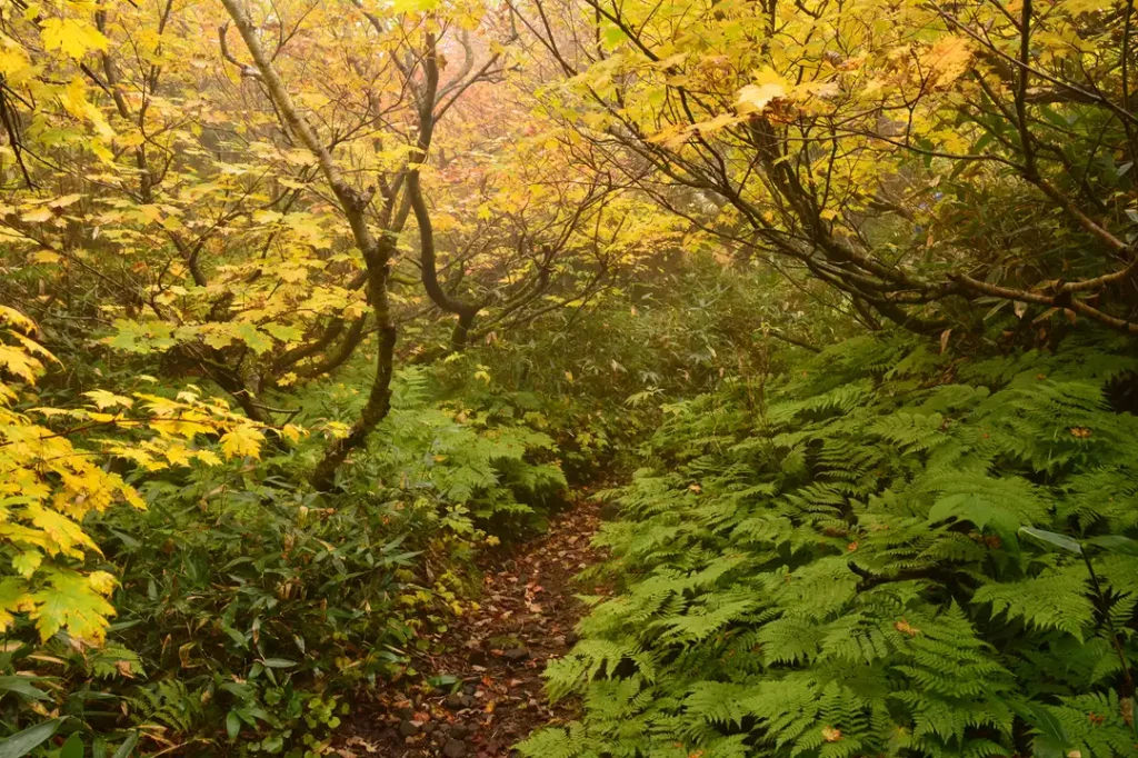 ちなみに山麓部はミズナラ、ハリギリ、トドマツなどの落葉広葉樹林~針広混交林が広がり、標高750m前後から1000m以下にはダケカンバを主体とする亜高山植生が見られる。