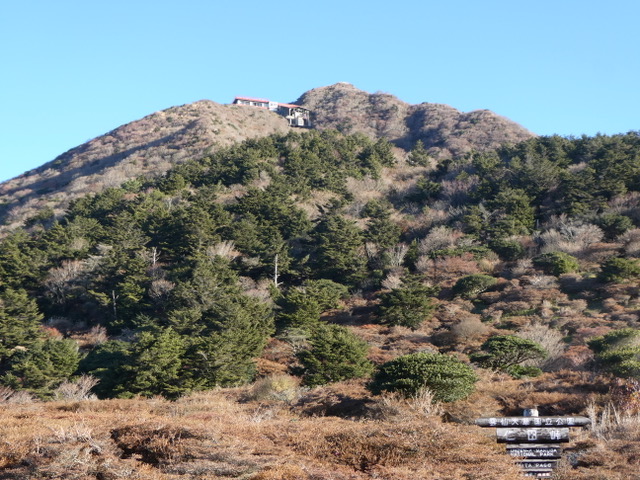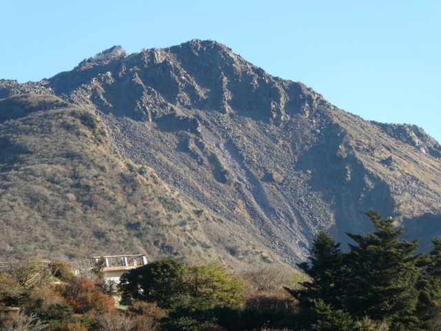 山頂に鋭く突き出た岩の隙間からは、時折わずかに噴気が立ち上っていた。