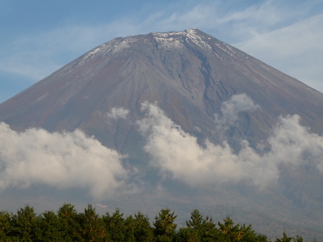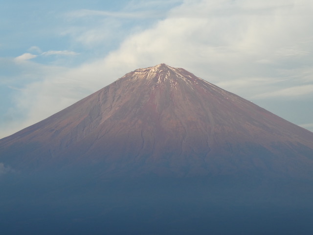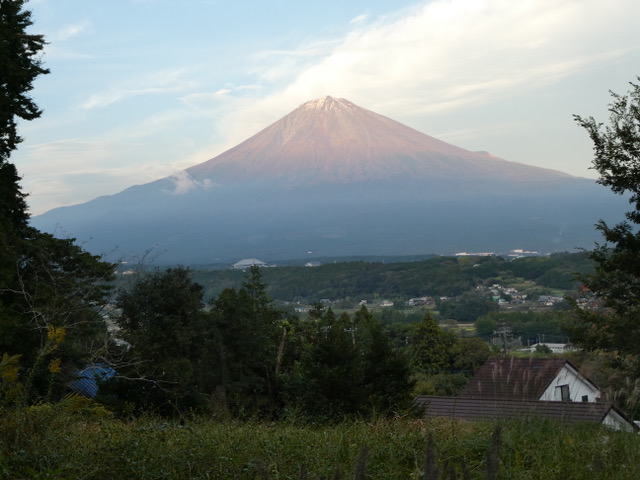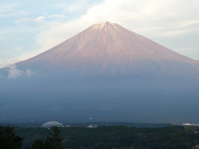 富士山の西側から南下して、南西方面から少し日が傾いてきた時間に眺めた富士山は、同じ日とは思えない優しい色をしていた。