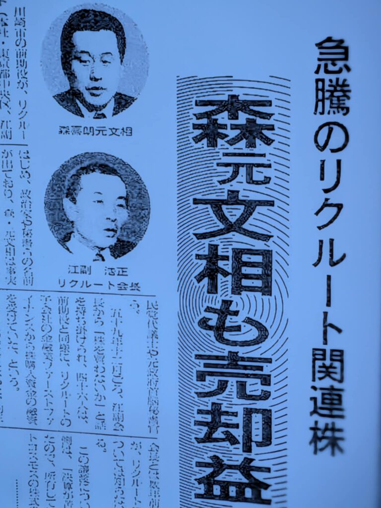 その証拠に、1988年の朝日新聞による最初の報道から1週間後、未公開株をもらってそれが売却益を産もうが何ら違法性などないと認識していた大臣経験者の森喜朗は、朝日新聞の記者に「ああ株ね、貰ったよ」とあっさりと認めている。